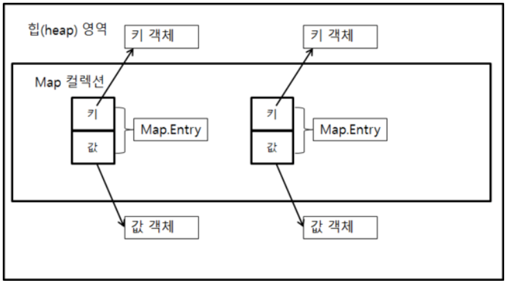 - 키와 값 타입은 기본 타입은 사용할 수 없고 클래스 및 인터페이스 타입만 가능하다.