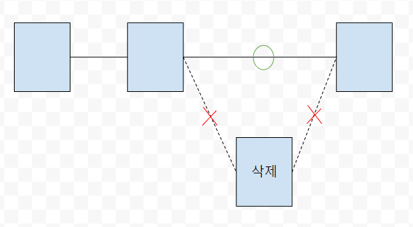 LinkedList 객체 제거 장점 단점 빈번한 객체 삽입과 삭제가 일어날 경우, 불필요한 데이터 복사가 없고 해당 객체의 앞과 뒤 링크만 변경시켜주면 되기 때문에 빠른 수행이 가능하다.