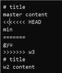 git은 같은 라인에서 브런치 각각의 수정을 자동으로 병합할 수 없으므로 사용자에게 보기를 주고 선택하도록 하는 것이다.