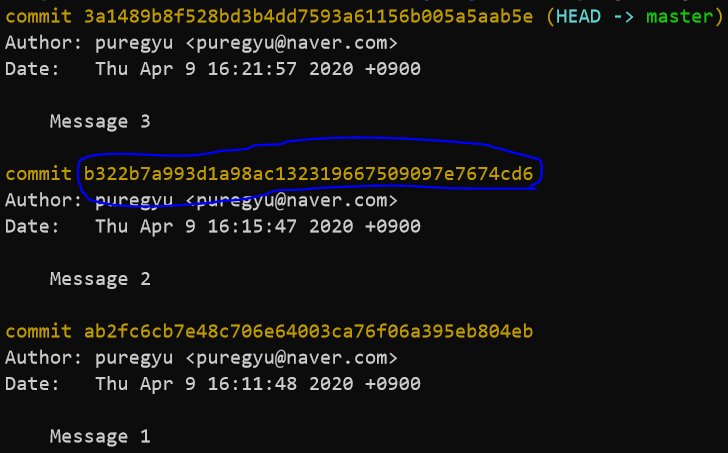 - commit ID값을 통해 해당하는 버전으로 리셋하는 명령어(선택한 버전이 되겠다.)
